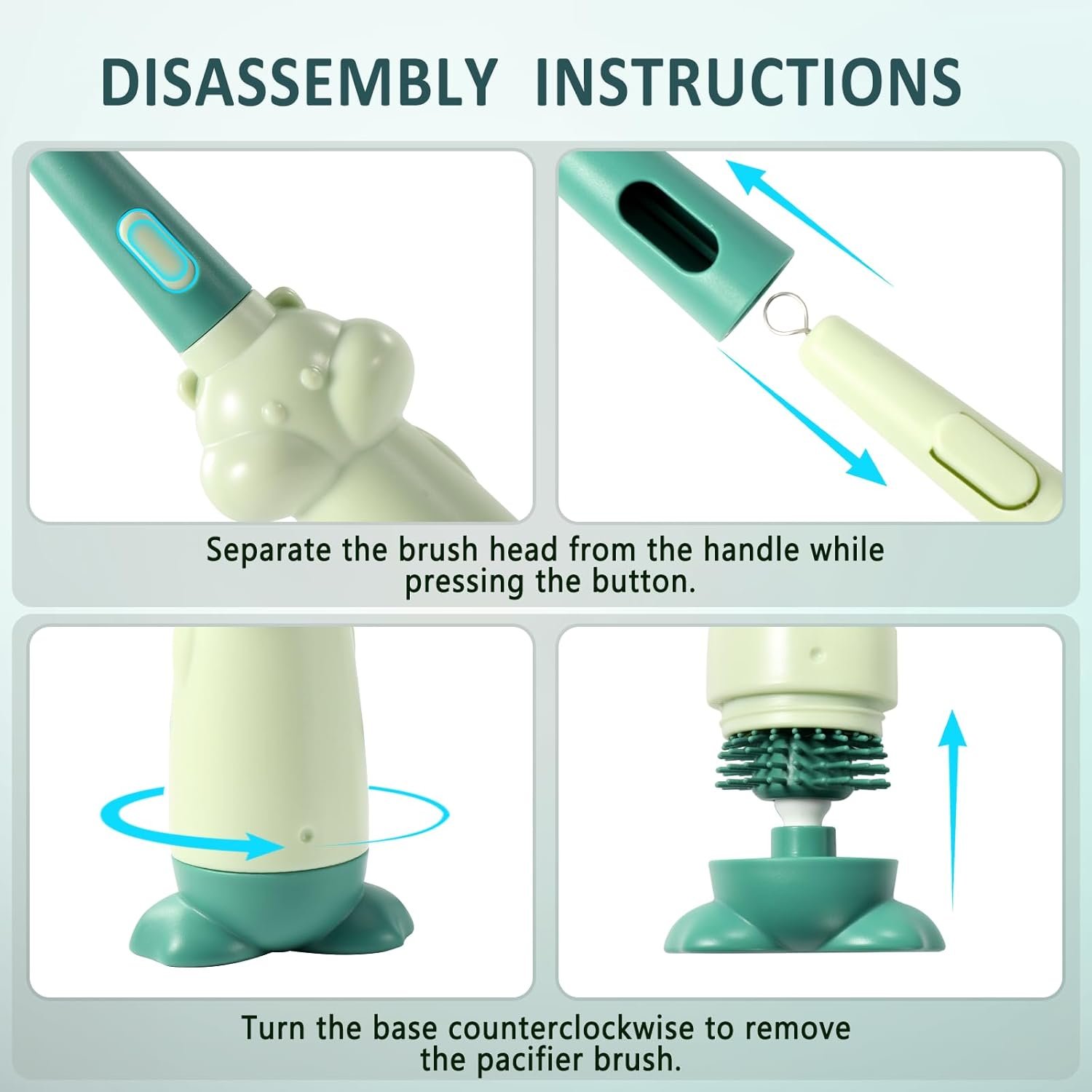 The integrated design keeps all brushes together, helping maintain an organized kitchen or baby care area. -
