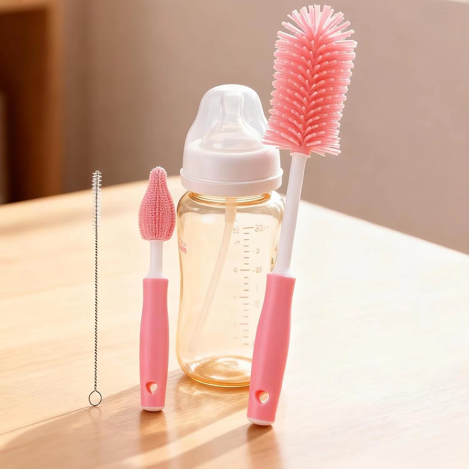 Includes different brush shapes and sizes, ideal for cleaning bottles, cups, straws, decanters, kettles, mixers, and juicers with ease. -